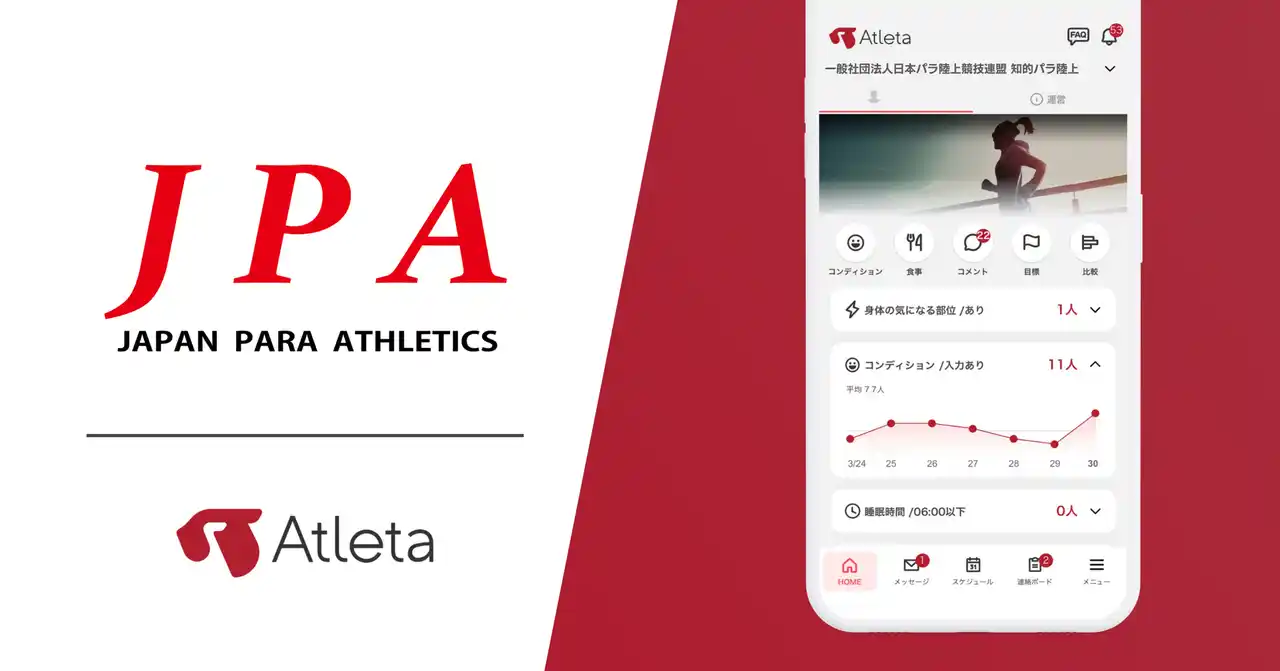 選手のデータ管理とチームコミュニケーションを支えるプラットフォーム「Atleta(アトレータ)」を展開するクライムファクトリー株式会社(本社:東京都渋谷区)は、このたび日本パラ陸上競技連盟の知的障害ブロックにおいて、強化・育成活動における情報共有およびコンディション管理ツールとして「Atleta」が導入されたことをお知らせします。 |