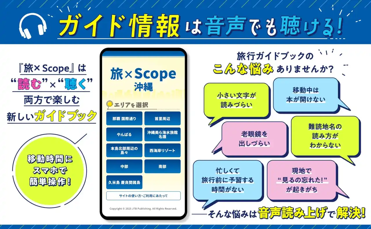 | こうした背景のもと、『旅×Scope(タビスコープ)』では、効率性と品質を両立できる手法として、AI音声が「聴ける」ガイドブック制作に採用されました。 | |||