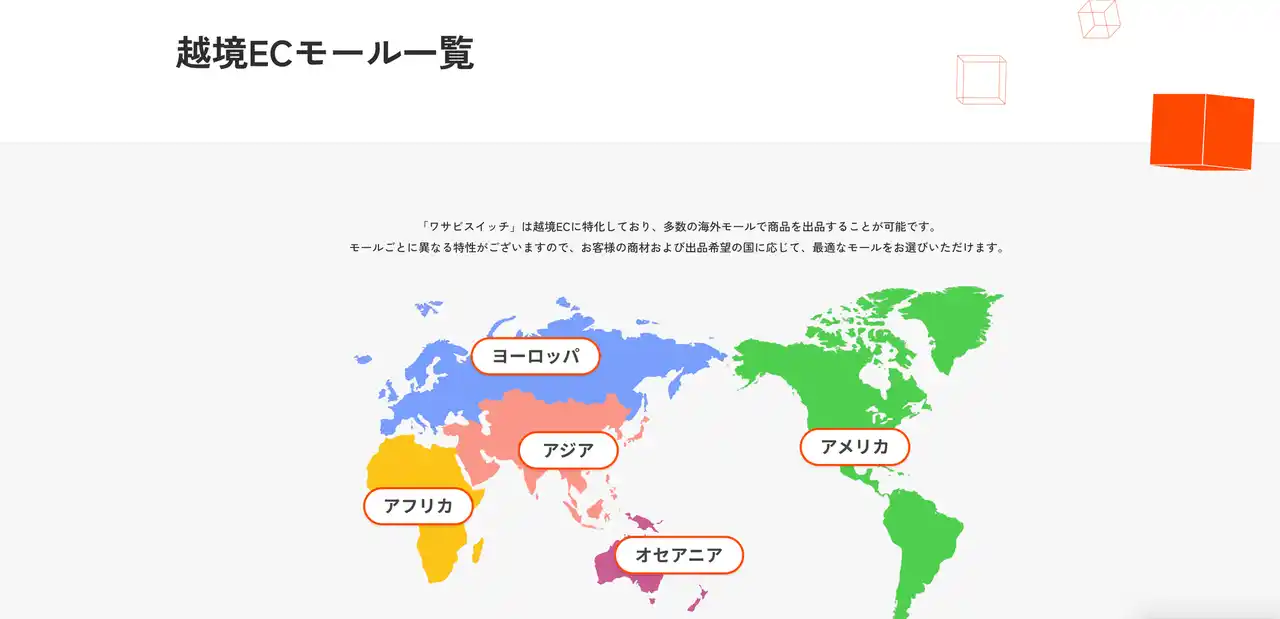 その中で「ワサビスイッチ」は、サービス開始当初より越境ECに特化した設計を行い、現在では、国内17モール、海外20モール(※1)といった広範なネットワークを構築。ワンストップで海外販売を実現するソリューションを展開しております。 |