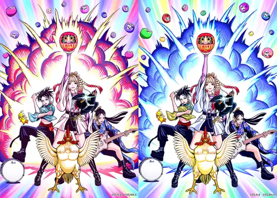 原作者・桜谷シュウ先生が描き下ろしたイラストは、『ニワトリ・ファイター』のメインキャラクターとDARUMA Rollin'のメンバーがキャンバスに集結。キュートな3人と力強いケイジたちの魅力が詰まった、唯一無二のビジュアルに仕上がっています。