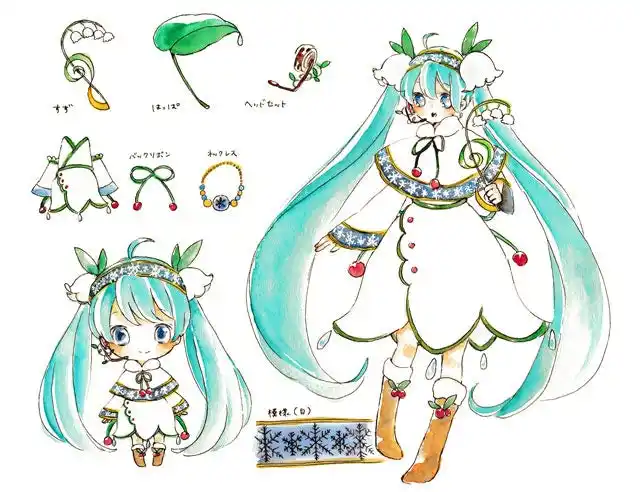 公募で決定した衣装原案をもとにNardacさんが手掛けてくださった「SNOW MIKU 2015」フェスティバルのビジュアル(以下「雪ミク 2015」ビジュアル)が、11年の時を経て平取町の初夏を彩ります。 |