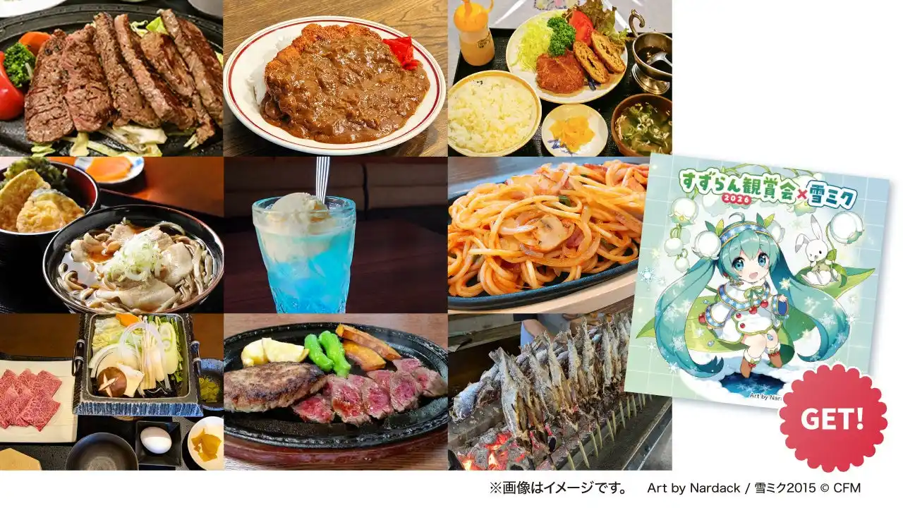 ・飲食店連携企画の特典である「雪ミク記念ステッカー」が写っていること |