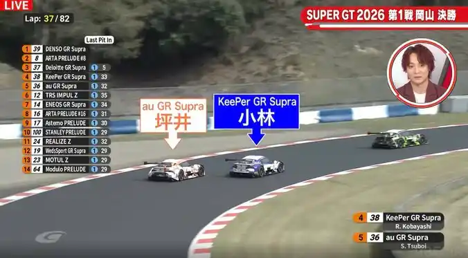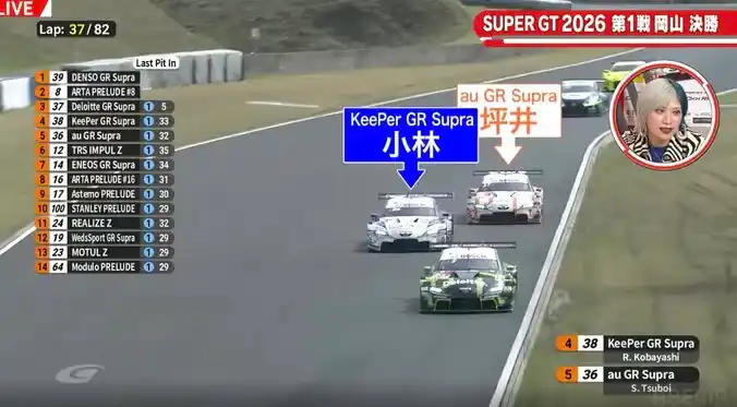 4月17日(金)に無料生放送『#1 岡山国際サーキット 笑って学べる!超GTぱーてぃー』~「右に行かなかったら…」王者・坪井翔vsルーキー・小林利徠斗、熾烈なスープラ対決の裏側~