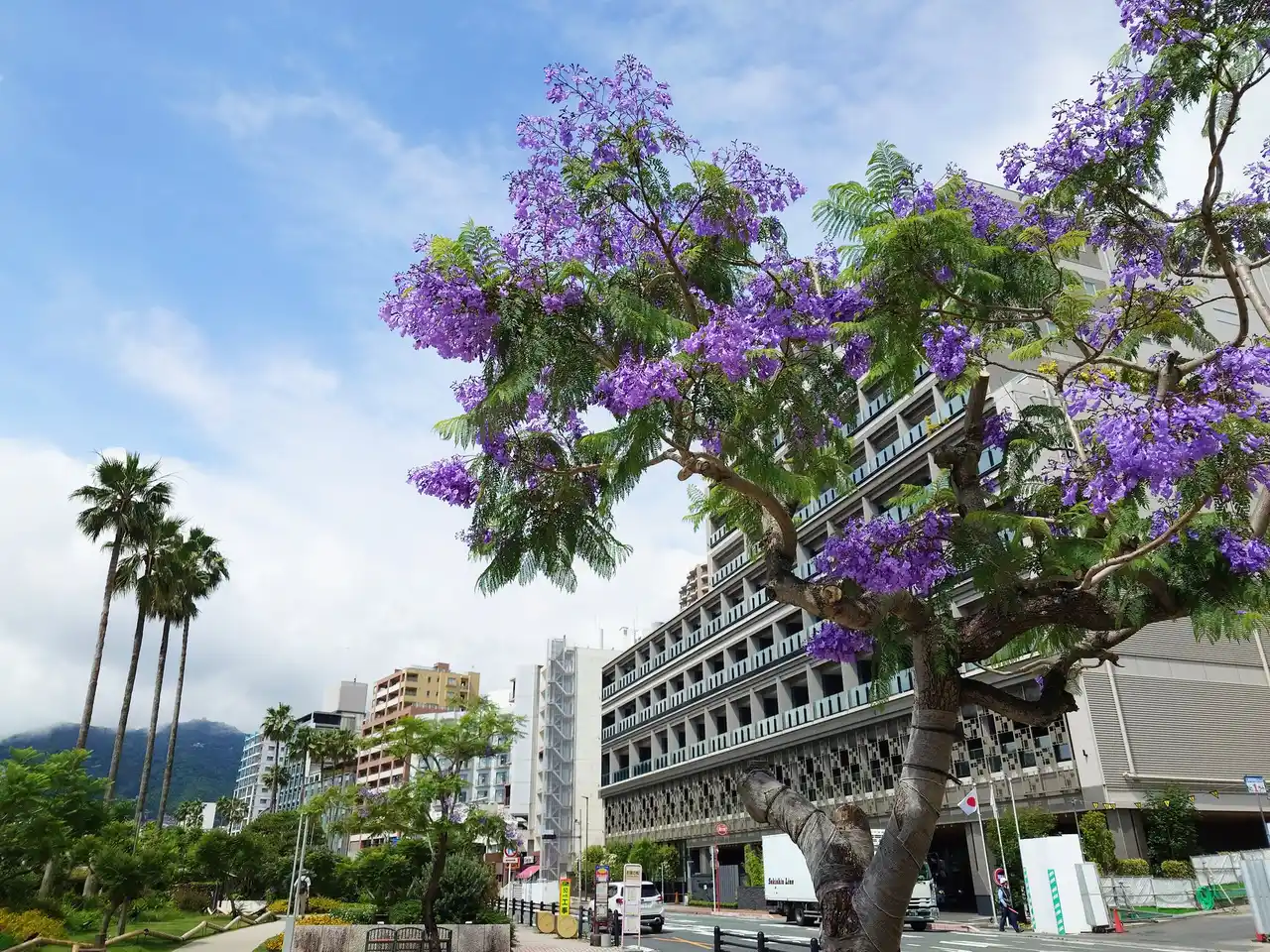 熱海の初夏を告げる花「ジャカランダ」。熱帯地域に分布する世界三大花木の1つで、1990年に国際姉妹都市であるポルトガルのカスカイス市から2本の木が贈られました。日本では開花が難しいとされていますが、熱海では100本以上が植栽され、海沿いを中心に青紫色の爽やかな花を見ることができます。期間中は18時から22時まで竹灯籠のライトアップも実施されます。 |