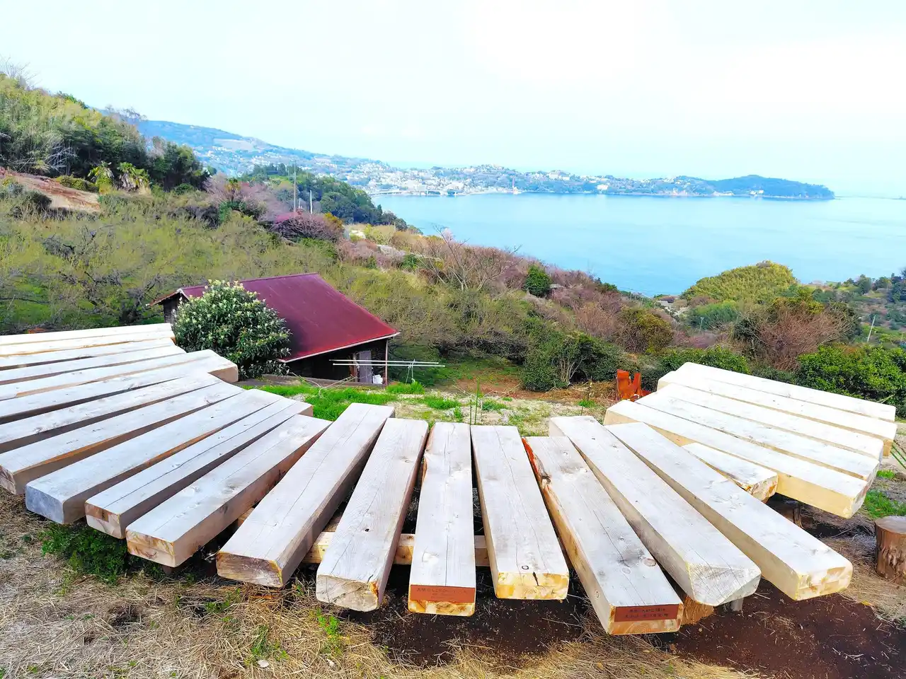 都内で人事組織コンサルティング会社を経営していた説田慶樹さん・有佳さん夫妻が運営する農園「たからのはたけ」。ここでは、「ファーム」に「バケーション」「ワーケーション」などの要素を取り入れた「ファームケーション」を体験できます。敷地内にある2つの小屋は改装され、ギャラリーと、リモートワーク・読書ができる空間に。ウッドデッキはヨガや体操、ワークショップなどに利用できます。また、農業体験や、説田夫妻による研修プログラムのオプションも用意。季節ごとの果樹の花や果実、野菜に触れ、鳥の声を聴き、海と山からの風を感じながら、リラクゼーションと仕事を思いのままに行き来できる、ここならではの時間を過ごすことができます。 |