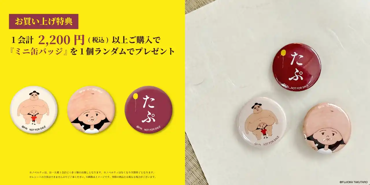 | さらに「たぷの里 ポップアップストア」の商品を税込2,200円以上お買い上げの方に特典として「ミニ缶バッジ(全3種)」をランダムで1点プレゼントいたします。 | |||||||||