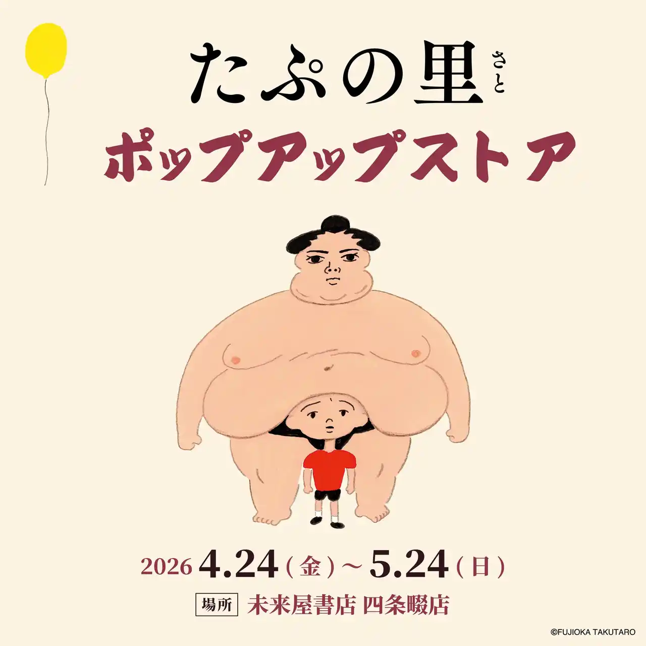 | 株式会社マリモクラフト(本社:東京都江東区)は、ギャグマンガ家の藤岡拓太郎さんが描く子供から大人まで人気の絵本『たぷの里』(ナナロク社)のオリジナルグッズを、2026年4月24日(金)よりの大阪府四條畷市「未来屋書店 四条畷店」内の期間限定ショップにて発売いたします。ポップアップストア開催は、TSUTAYレイクタウン店に続いて2店舗目。関西では初出店となります。 | |||||||||