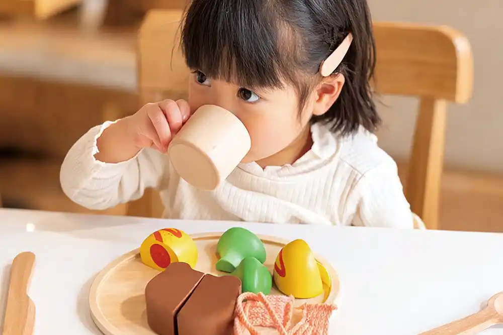 | 食べものへの親しみや興味を育むきっかけにもなり、あそびの中で自然と食育やコミュニケーションの時間が生まれるのも特長です。 | |||||||||||||||
