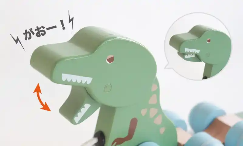 | さらに、大きく開く口の造形を活かして「がおー!」と恐竜になりきることで、ごっこあそびにも自然と広がります。動きの面白さと、想像力を楽しむあそびの両方が楽しめます。 | |||||||||||||||