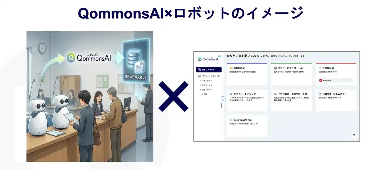 行政専用生成AI「QommonsAI」 は、国内外の法令・政策・自治体事例など膨大なデータを基盤とし、全国の自治体における業務効率化と意思決定支援を実現しています。 |