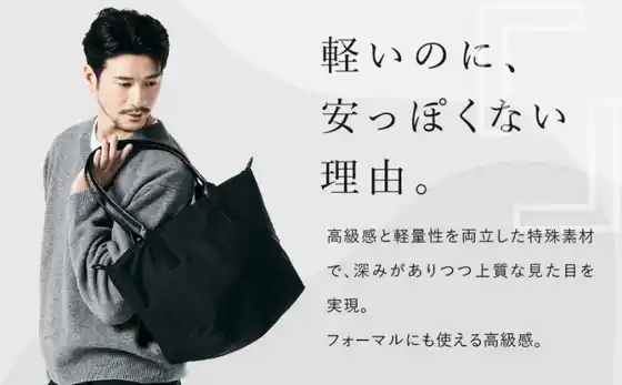 本体約260g。手にした瞬間、思わず「何も入っていない?」と確かめてしまうほどの軽さです。通勤鞄、マザーズバッグ、ジムバッグ。用途は人それぞれでも、肩の荷がふっと消える感覚は共通です。「無重力トート」は、日常のあらゆるシーンに静かに溶け込む一枚として設計されました。 |