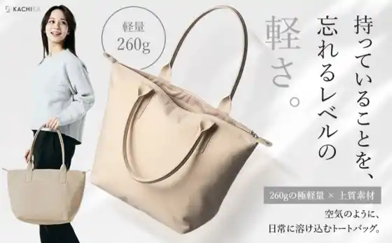 株式会社SynaBiz(本社:東京都品川区、代表取締役:石丸啓明、株式会社オークファン100%子会社)が展開するプライベートブランド「KACHIKA」は、無重力のように軽やかな超軽量トートバッグを発売しましたのでお知らせいたします。 |