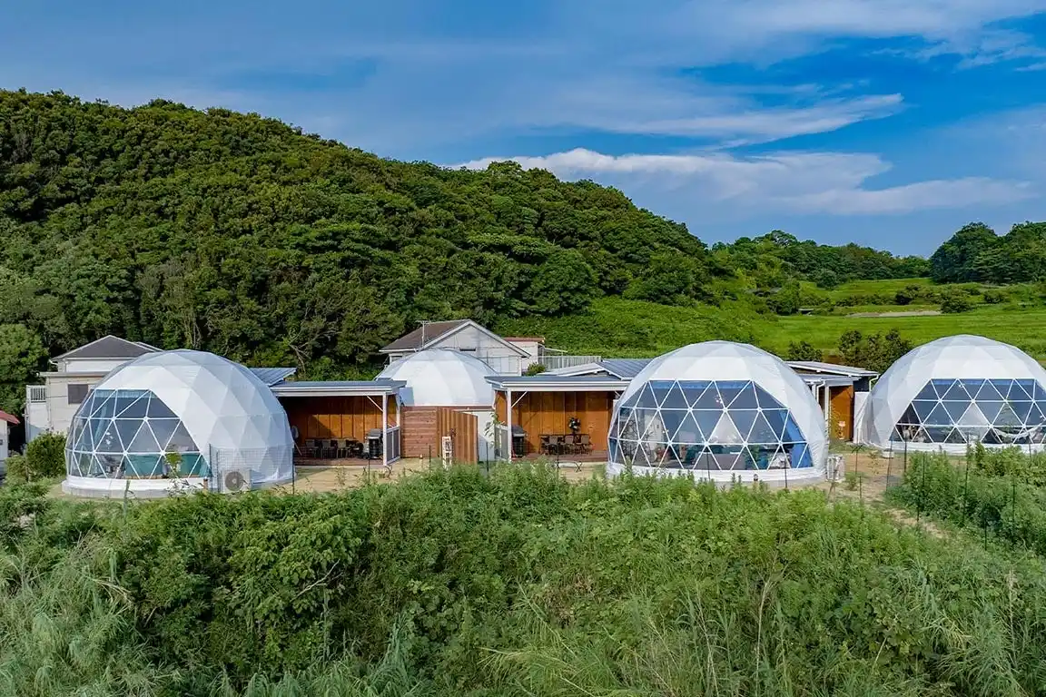 緑に包まれた中に並ぶ、可愛らしいドーム型テント |