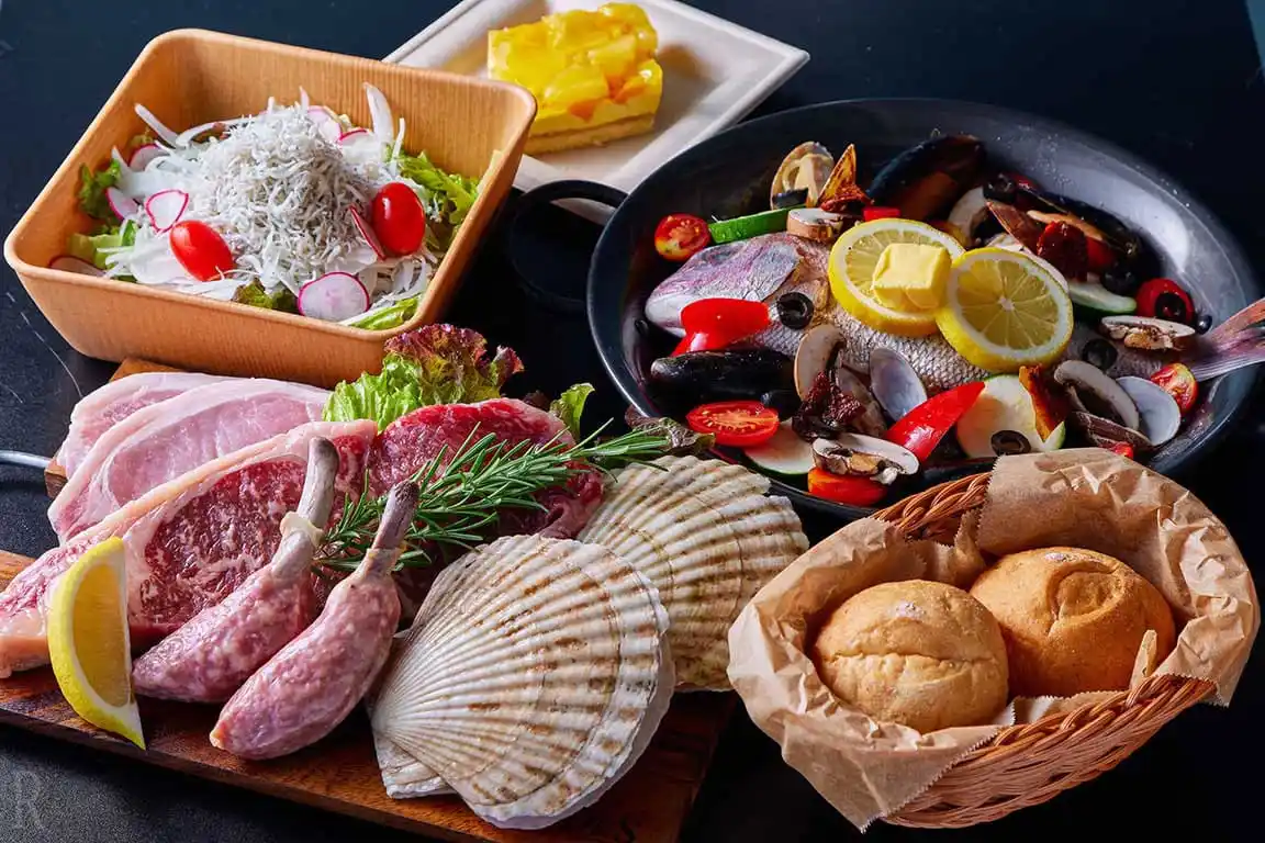 厳しい認定基準をクリアした最高級ランクの「淡路ビーフサーロイン」や希少な「フィレ」など、3種のメインからお好みの肉を選べる本格BBQを、期間限定の15%OFFにてご提供いたします |