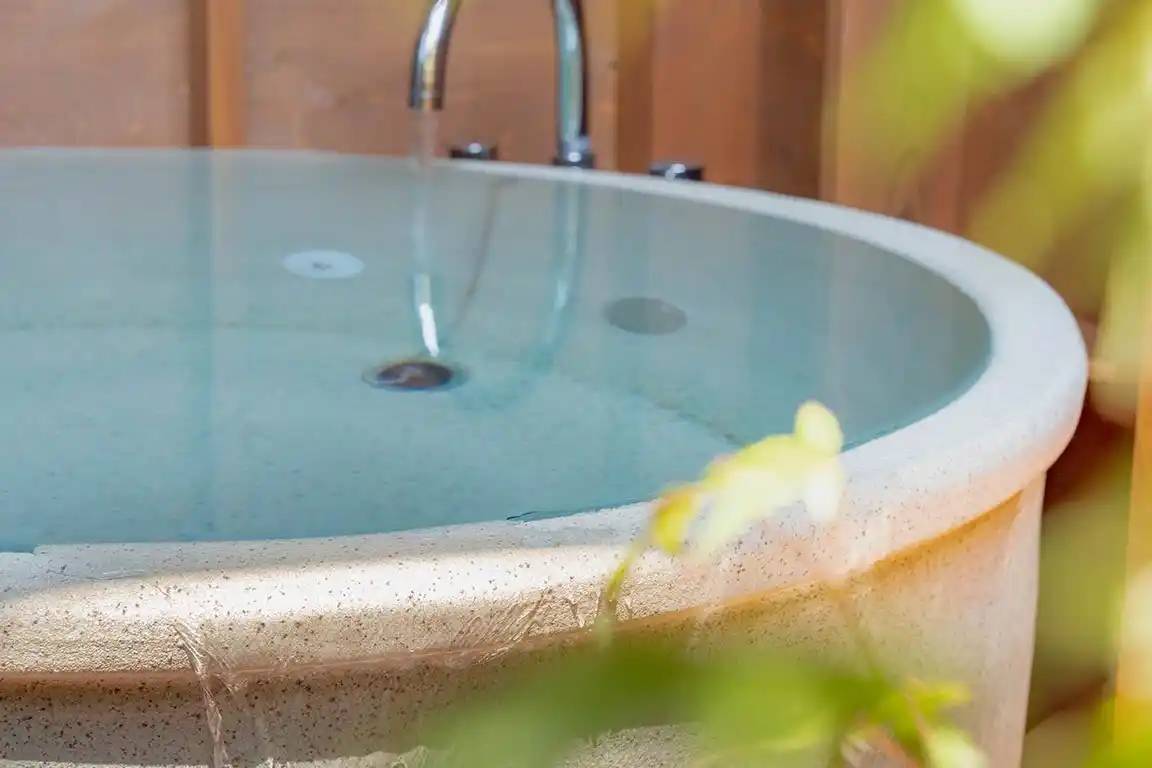 全室に専用露天風呂と焚き火台を完備!食事スペースは屋根付き・エアコン完備で、季節や天候を問わずプライベートな空間で贅沢なリラックスタイムをお過ごしいただけます |