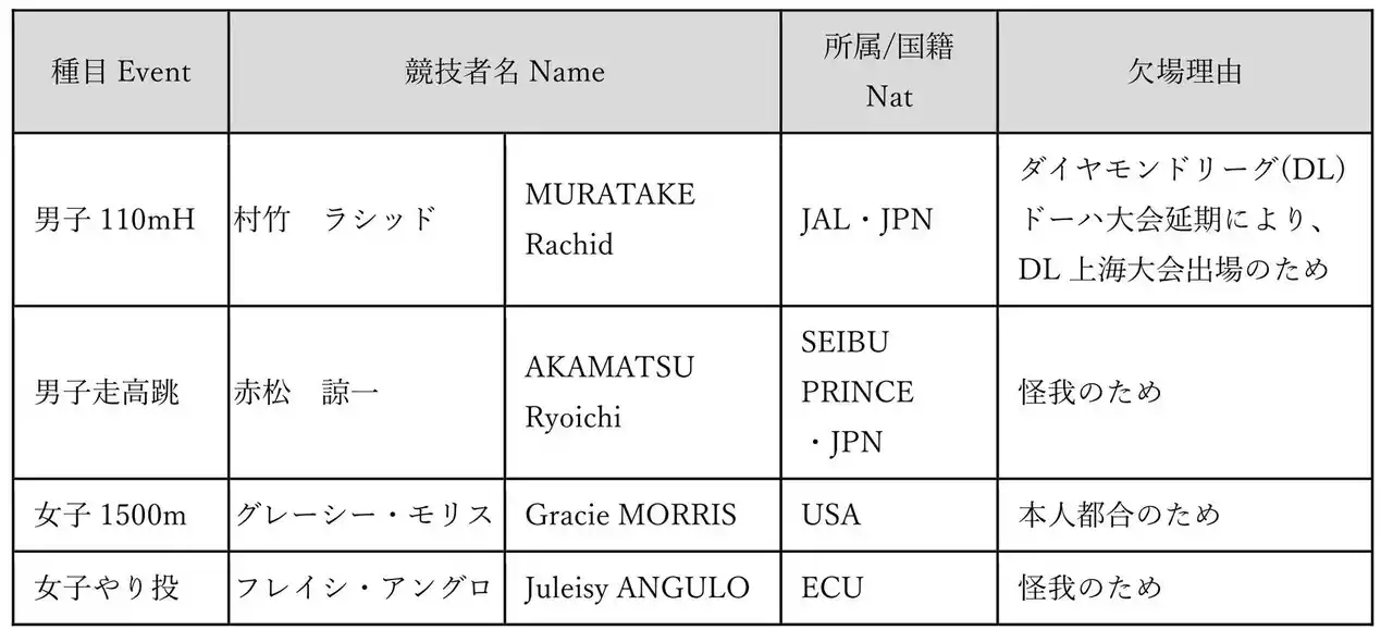 【セイコーゴールデングランプリ2026】第5弾出場選手情報と欠場選手のお知らせ