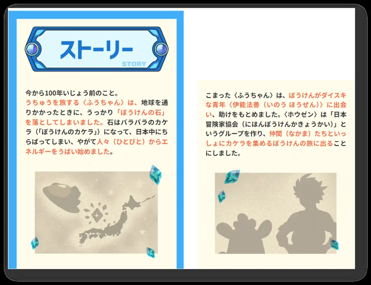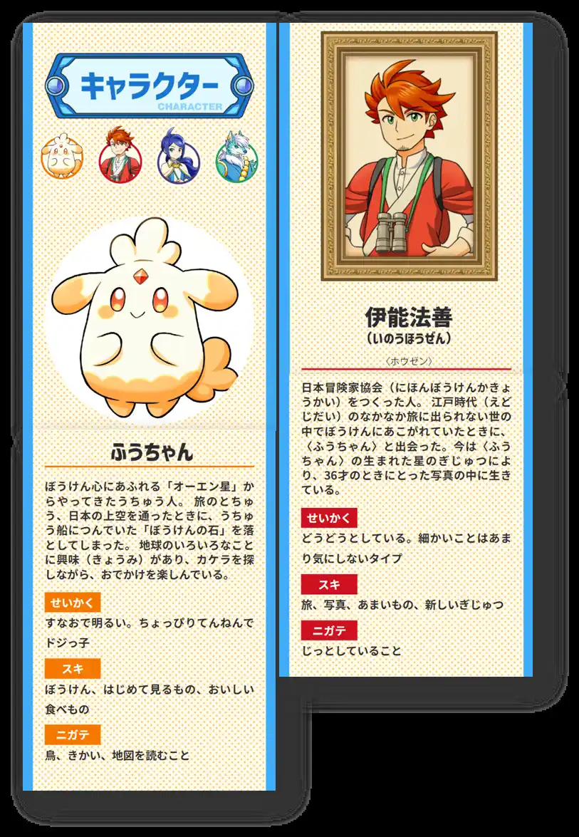 ストーリーとキャラクターを用意し、子どもたちが勉強感なく取り組めるようにしました。キャラクターデザインはトレーディングカードのイラストなども手掛ける人気イラストレーター・佐久間さのすけ氏(https://x.com/sakumasanosuke)が担当しています。 |