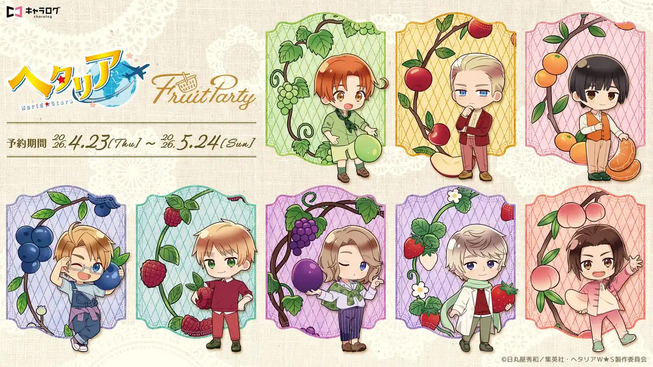 株式会社ディ・テクノ(本社:東京都港区 代表取締役:市原 高明)は、2026年4月23日(木)12:00より「ヘタリア World★Stars ~Fruit Party~」オリジナルグッズの予約受付を開始いたしました。 |