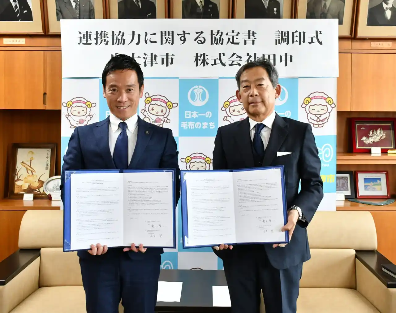 左から泉大津市 南出市長・株式会社田中 住吉代表取締役社長 |