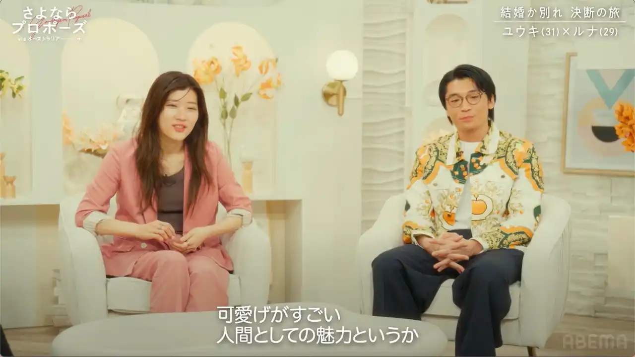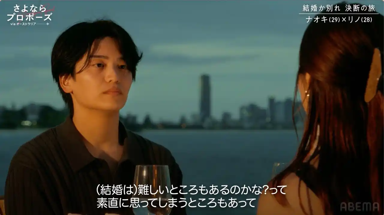 新しい未来のテレビ「ABEMA(アベマ)」は、「ABEMA」オリジナル結婚決断リアリティ番組『さよならプロポーズ via オーストラリア』の第8話を、2026年4月23日(木)夜9時より放送いたします。 |
