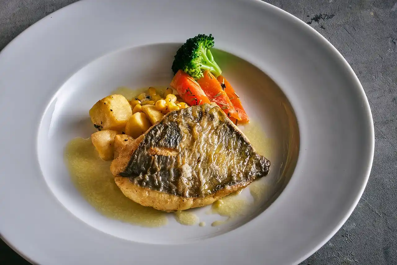 ・的鯛のポワレ レモン香るブールブランソース または 乳酸菌発酵豚のソテー ハニーバルサミコソース |