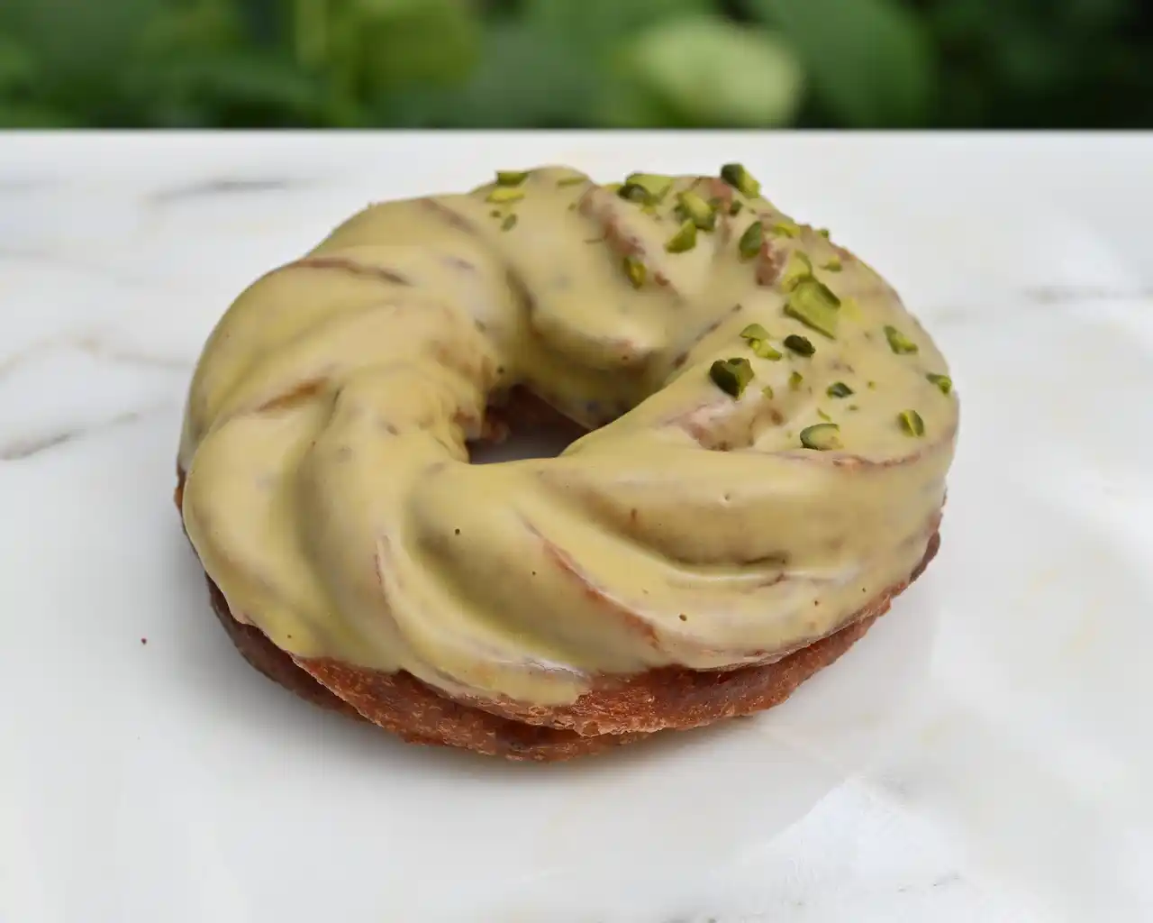 軽やかな食感のフレンチクルーラーに、ピスタチオ香るホワイトチョコレートをコーティング。ローストピスタチオの食感がアクセントとなり、最後まで軽やかに楽しめます。 |