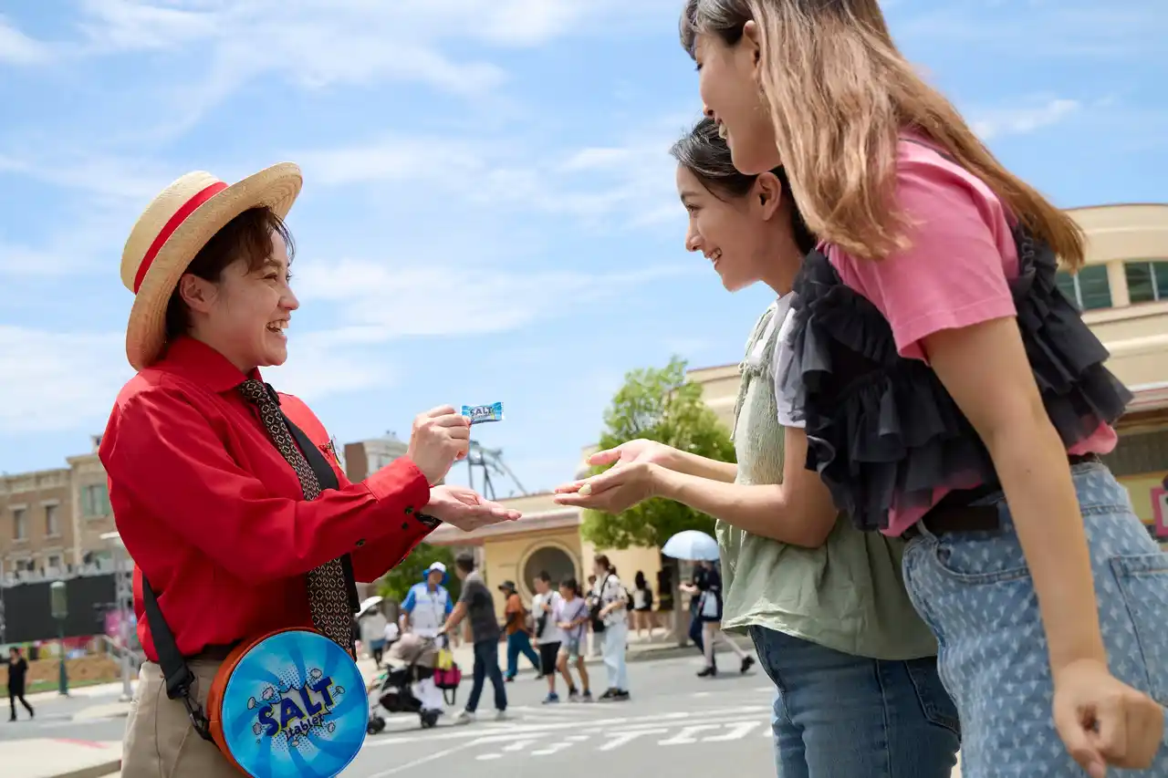 ゲストの皆さまに笑顔を届けるため、ミストスプレーで描くパークの仲間たちを楽しみ、ゲスト自身も参加することができるパーク名物の「スプレーアート」を、キャノピー下で実施します。また、ゲストの皆さまに ひと吹きの“清涼”を届けるミストファンを用いたクルーのアクションも昨年と同じく実施。さらに、ゲストの皆さまへ元気と笑顔をチャージしてもらうため、クルーからの「塩分タブレット」配布も、昨年に引き続き行います。 |