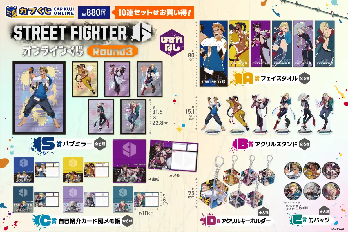 株式会社カプコンが運営するオンラインくじサービス「カプくじオンライン」(以下、「カプくじ」)にて、カプコンの大人気対戦型格闘ゲーム『ストリートファイター6』のオリジナルグッズを展開いたします。 |