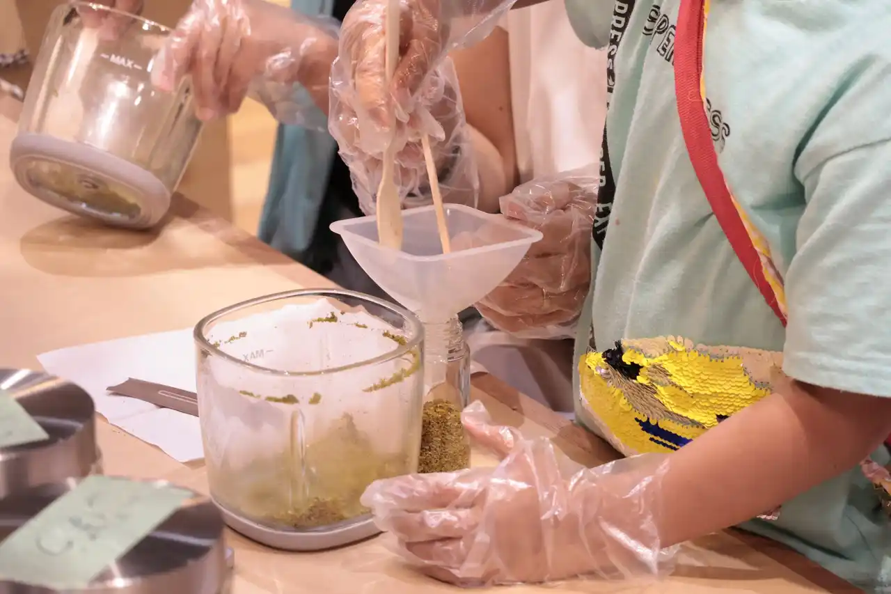 子育てファミリーを中心に、SNS総フォロワー150万人を超えるクリエイター「つむぱぱ」プロデュースのサステナブルワークショップ。規格外野菜を使用し、自分だけのオリジナルふりかけづくりができるほか、卵の殻を再利用したカラフルな指輪づくりにも挑戦できます。素材に触れながら楽しむものづくりを通して、食や資源の大切さを学べる、お子様にもおすすめのプログラムです。 |