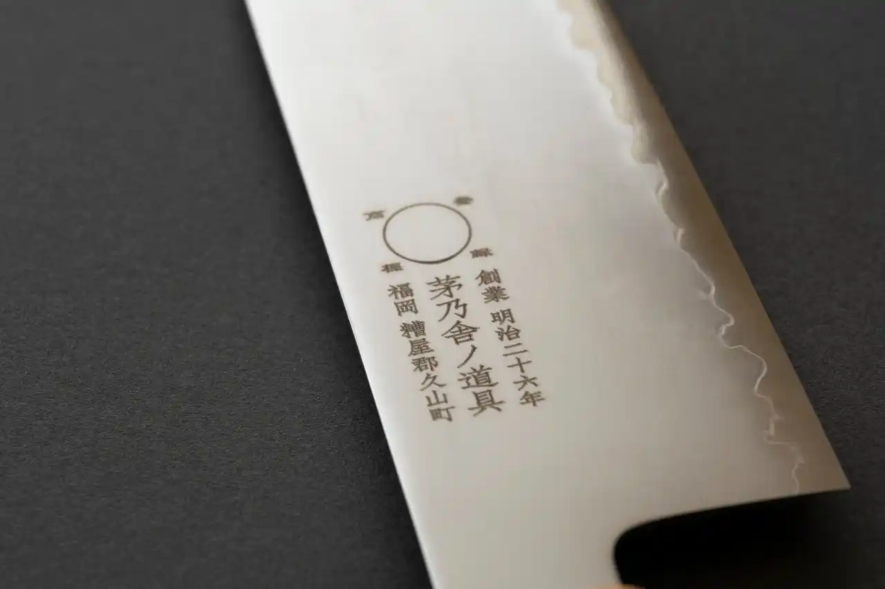 刀身には「茅乃舎ノ道具」のロゴを刻印しました。 |