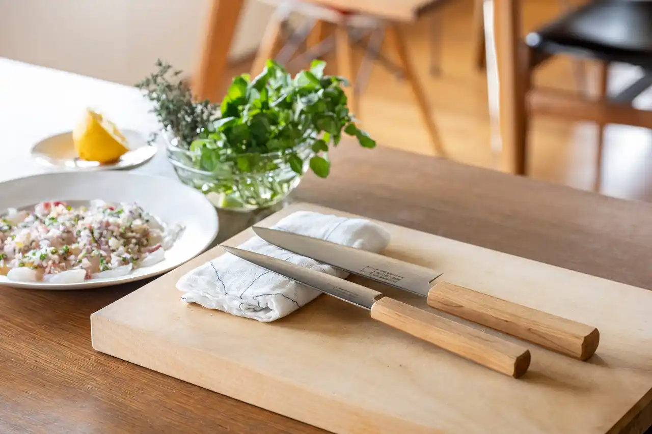 本商品は、刃物の街・大阪府堺市の「馬場刃物製作所」とともに「御料理 茅乃舎」統括料理長も商品開発に携わりました。 |