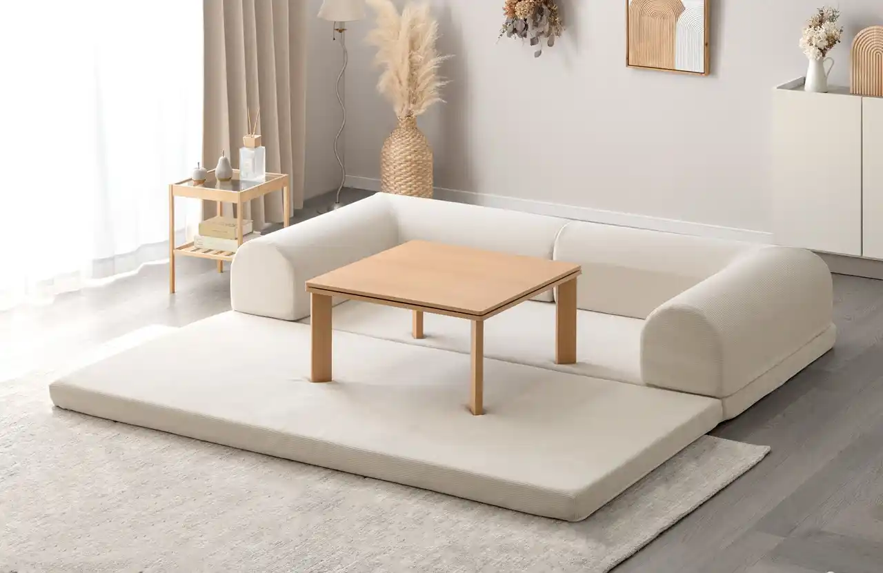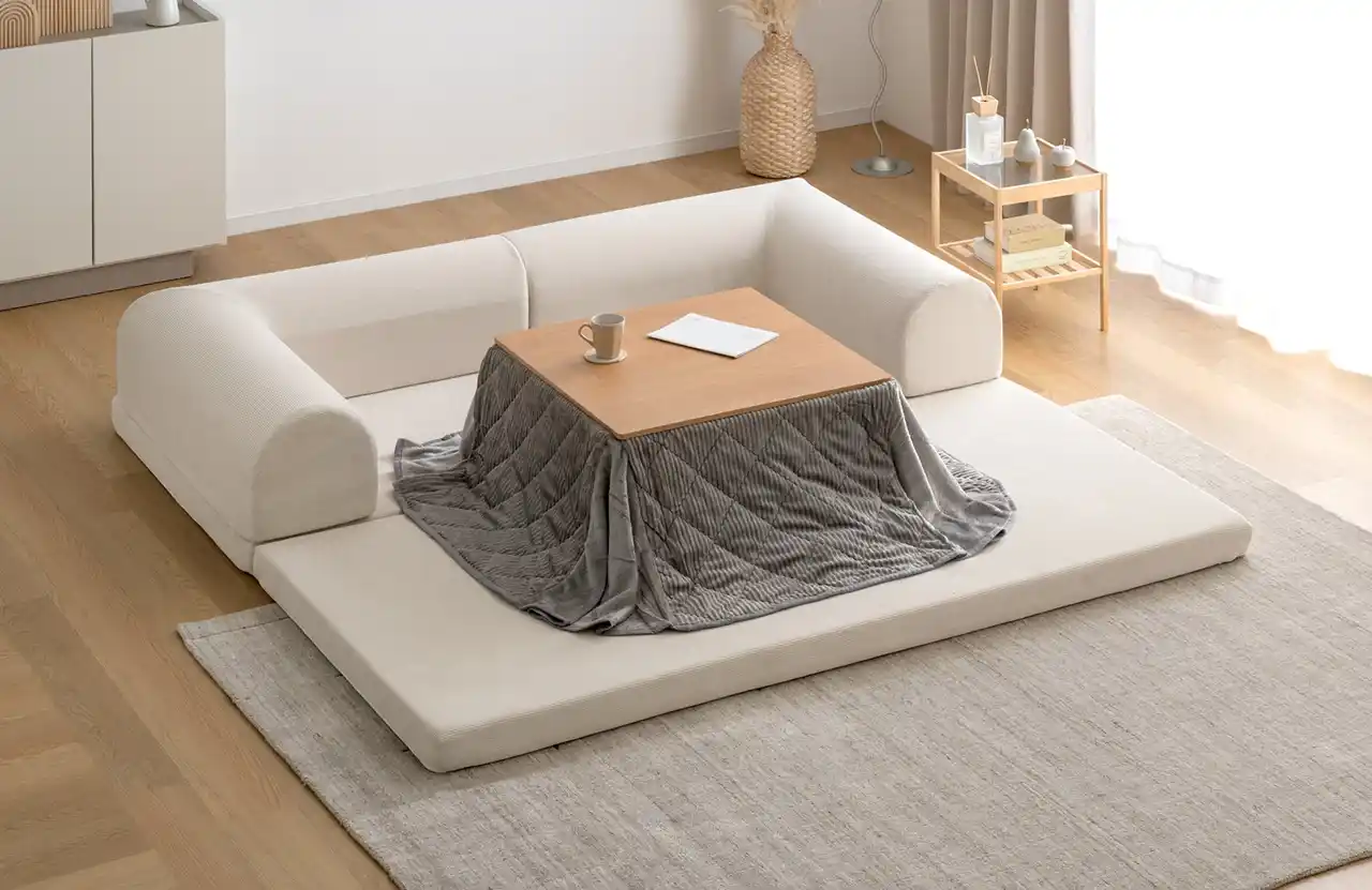 | 硬めの座面になっているので、座面を広げるとテーブルと併用することができ、寒い時期にはこたつと合わせて使用することもできます。 | |||||||||||