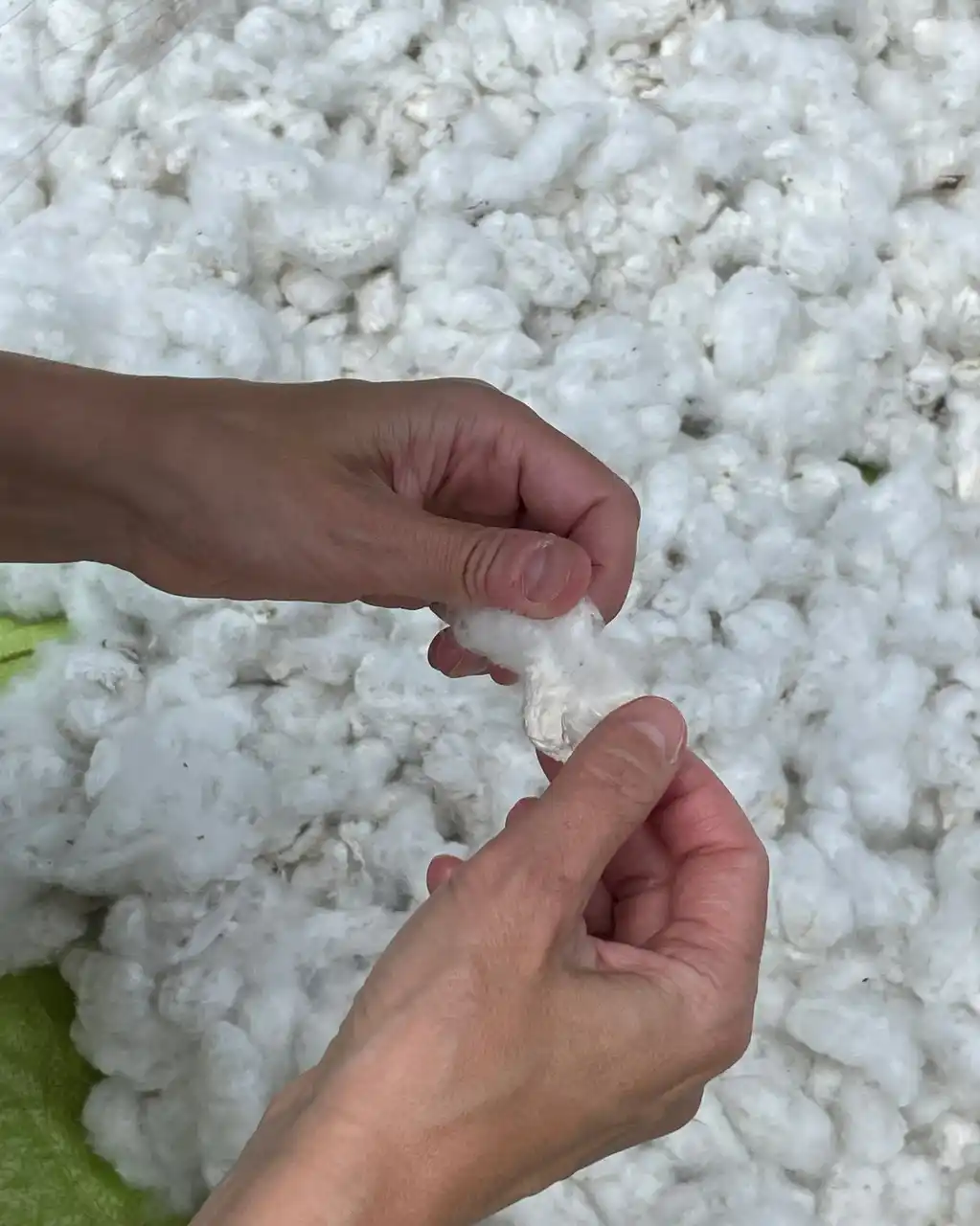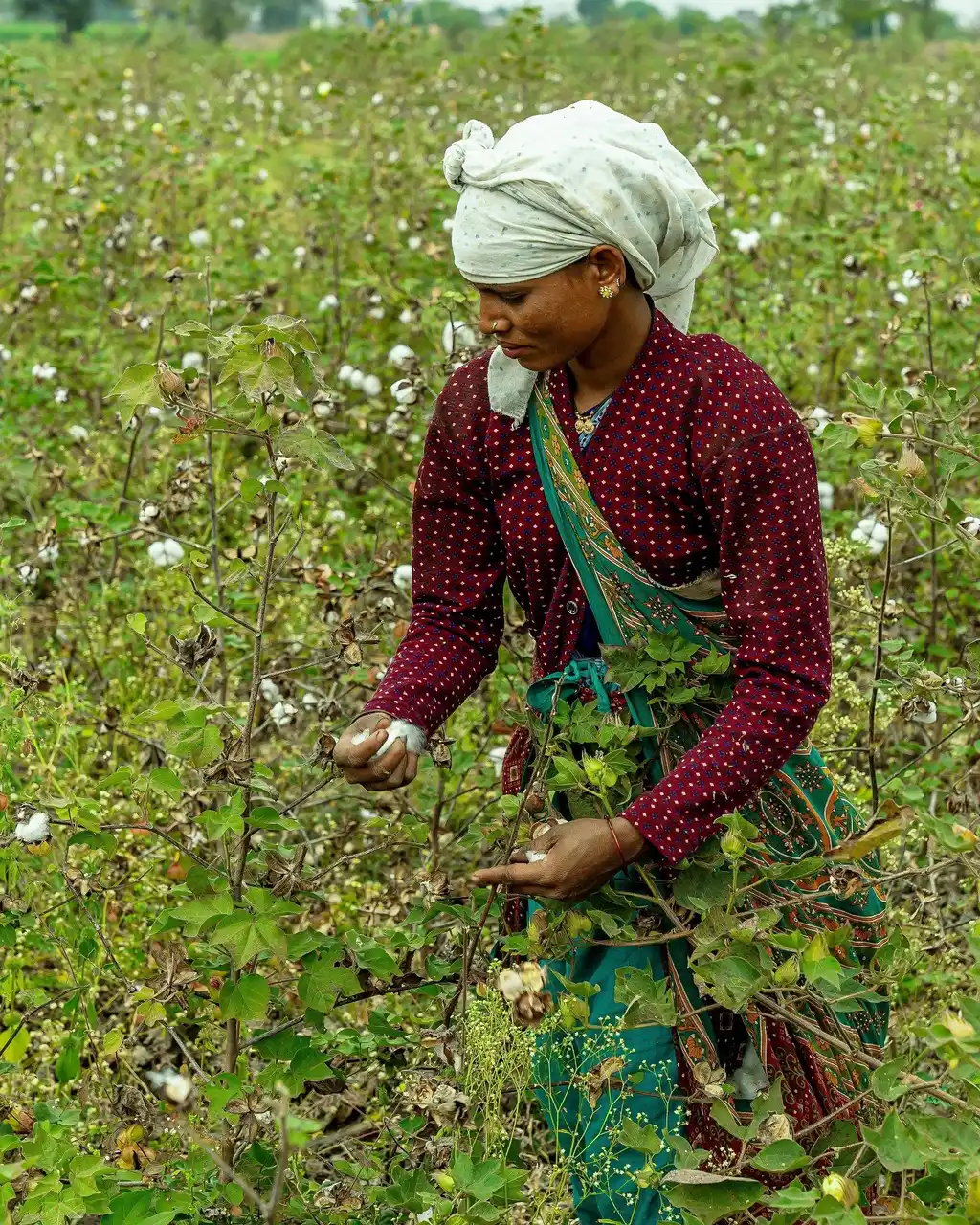本プロジェクトは、インド有数の綿花生産地であるグジャラート州を中心に展開されています。スペイン「ECOALF」は、再生型農業を実践する農業コミュニティと長期的なパートナーシップを構築。単なる原料の調達にとどまらず、農家の技術支援と経済的安定を重視した関係づくりを基盤としています。当初は少人数の研修を受けた農家グループから始まったこの取り組みは、現在では複数の村にまたがる数千人の農家からなるネットワークへと成長しました。 |