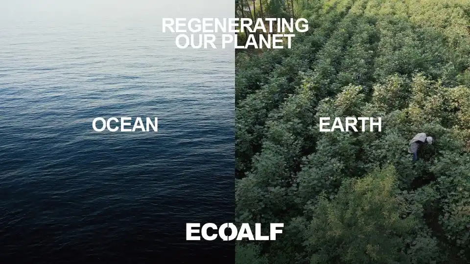 「ECOALF」はこれまで、再生素材の研究開発や、海洋ごみを回収・再利用するプロジェクト「UPCYCLING THE OCEANS」を通じて、環境負荷を低減する取り組みを続けてきました。一方で、「低減するだけでは気候変動や資源枯渇のスピードに追いつかない」という問題意識が、ブランド内で強まっていました。 |