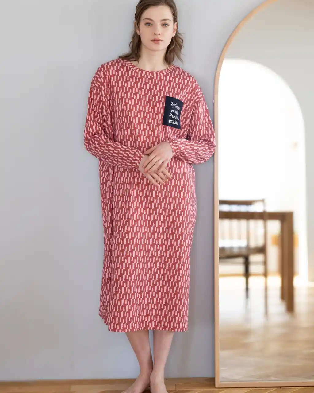 キシリトール長袖Tワンピース(総柄) |