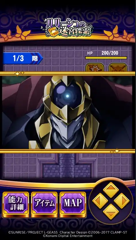| 「ルルーシュ」を操作して迷宮を探索!コラボならではの要素“ナイトメアフレーム”が登場。コラボ限定のギミックを活用して、探索を有利に進めましょう! | ||||||||||||||