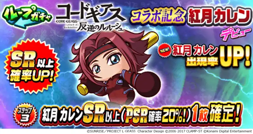 コラボを記念したループガチャを開催!「ルルーシュ・ランペルージ」・「枢木 スザク」・「紅月 カレン」が登場