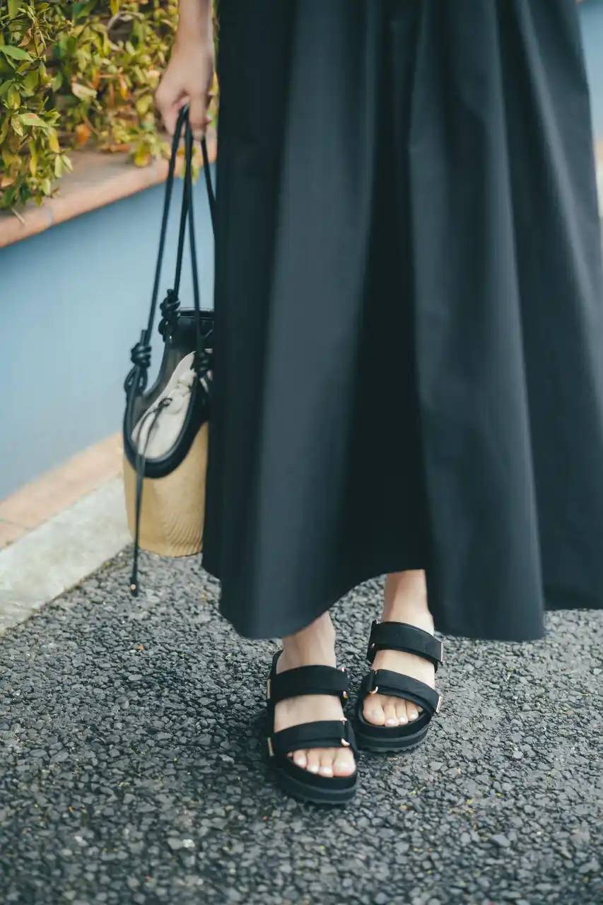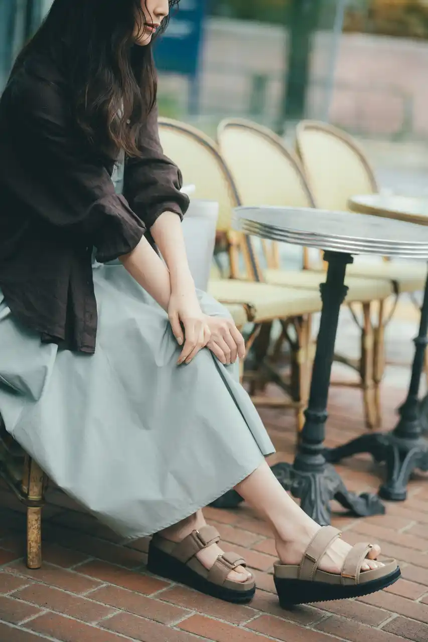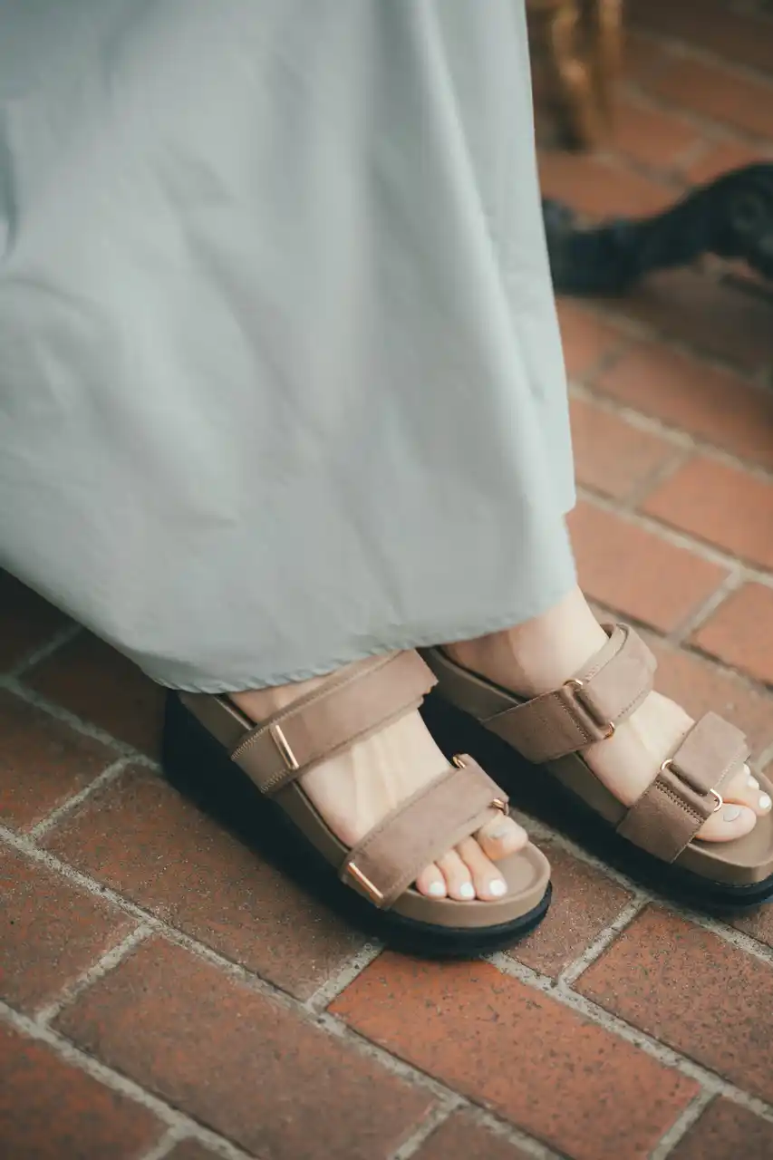 「このワンピースに、最高の足元を。」 そんな想いから同時復刻を果たしたのが、このフットベッドデザインサンダル。スポーティな軽快さと、大人の品格を兼ね備えた、リクエストの絶えない名品です。 |