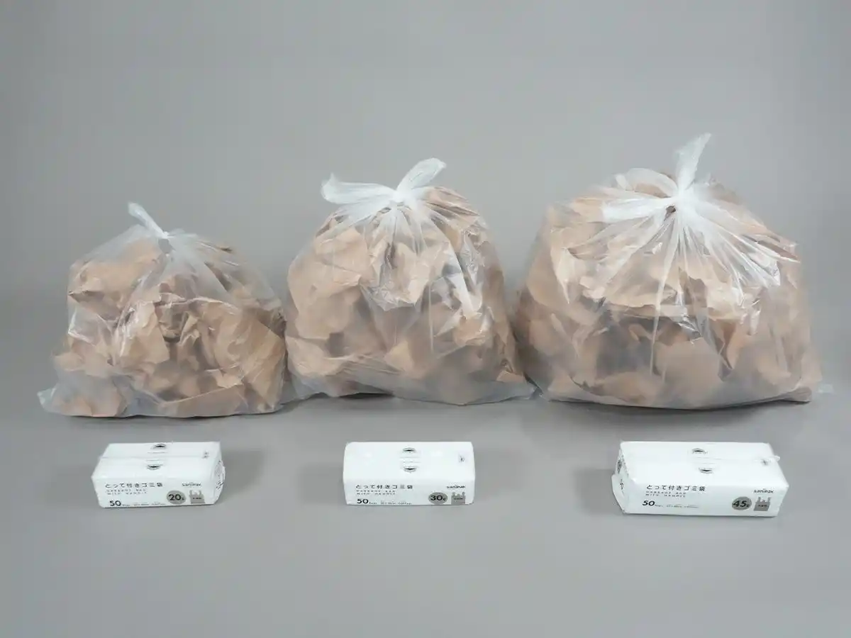 20L、30L、45Lと、それぞれ袋の色は半透明です。中身が確認しやすく、ゴミ出し以外にも衣類保管などでも活躍します。 |
