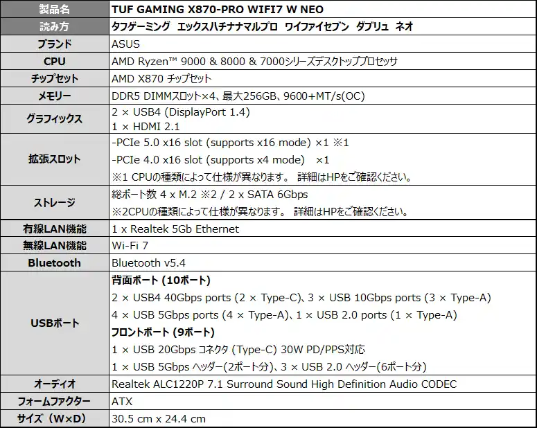 TUF GAMING X870-PRO WIFI7 W NEO |