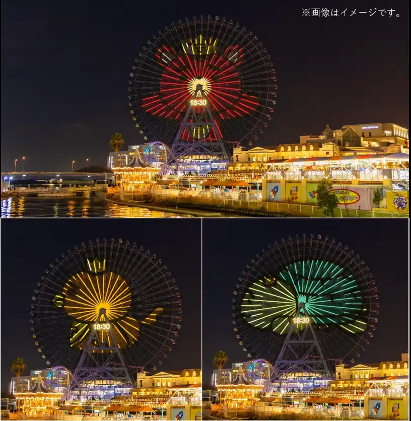 大観覧車「コスモクロック21」※特別演出以外の時間は公式カラー |