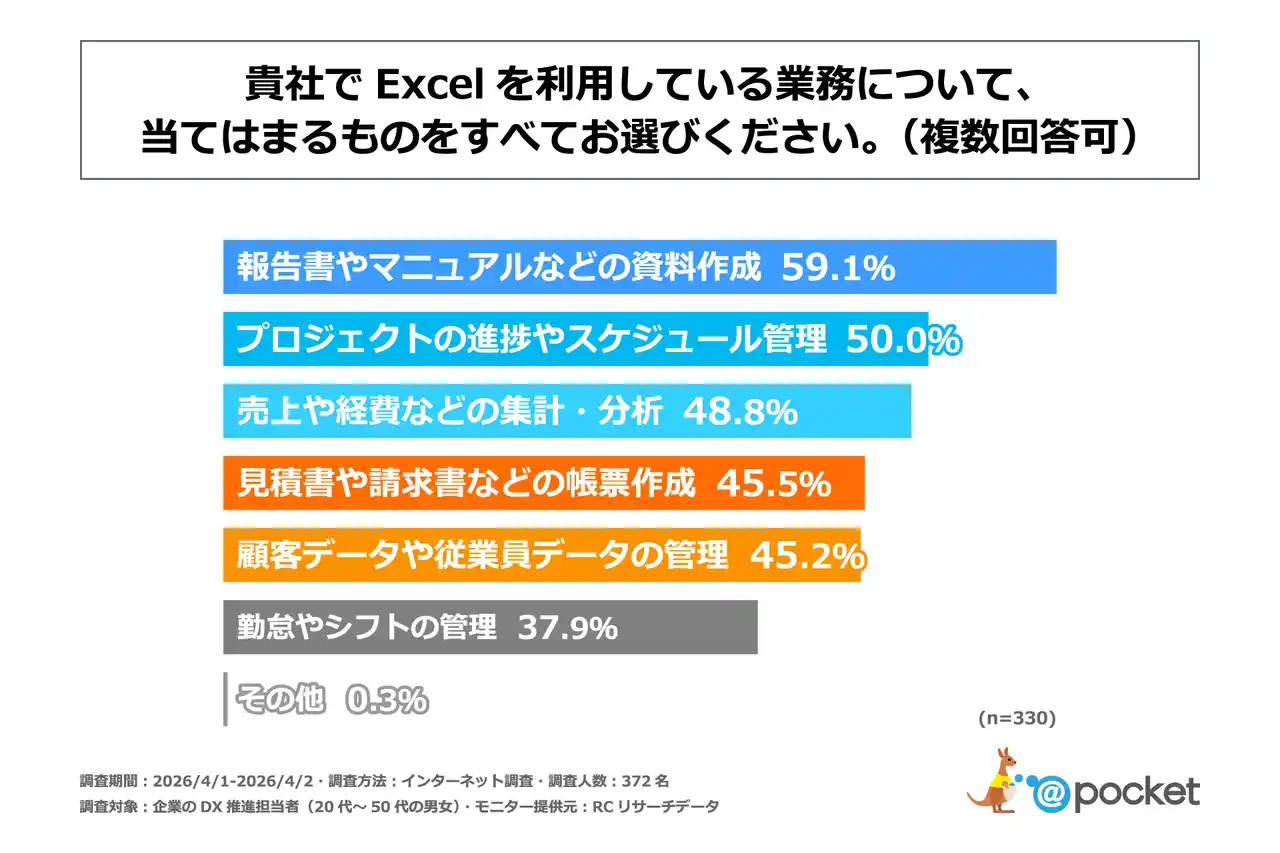 企業のDX推進担当者の約9割が、自社の業務でExcelを利用していると回答 |