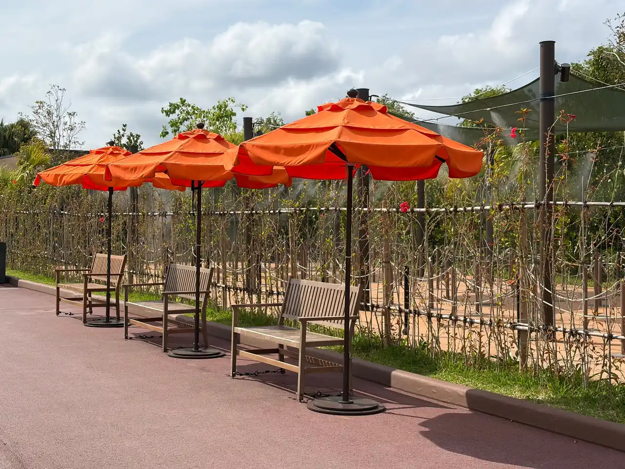 自分のタイミングで休憩ができる「ベンチ&パラソル」を昨年比 約40%増設し、日陰スペースを確保 ゲストにパーク内の各所でゆったりお過ごしいただけるよう、2026年もベンチとパラソルを追加で、昨年比約40%のスペースを増やします。ゲストによりお好きなタイミングで、ほっと一息つける空間づくりを目指します。 |