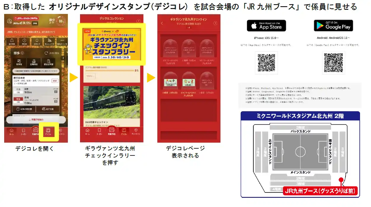 | ⑴「小倉駅」と「ミクニワールドスタジアム北九州」で、オリジナルデザインスタンプをGET! | |||||||||