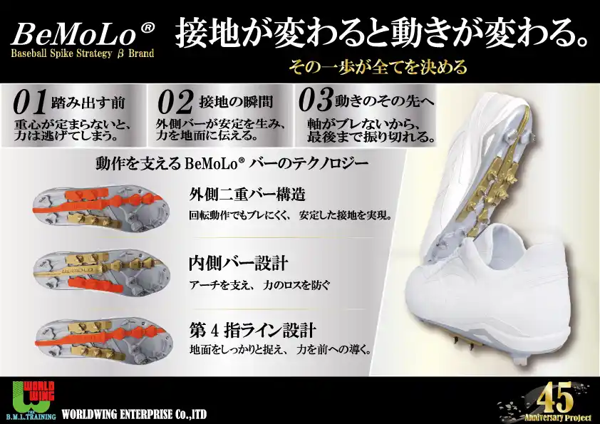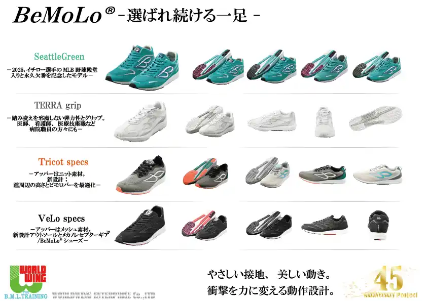| BeMoLo(R)シューズは、足底感覚受容への適切な刺激と応答を通じて、運動制御の最適化を図る設計思想に基づき開発されました。 | |||||||||||