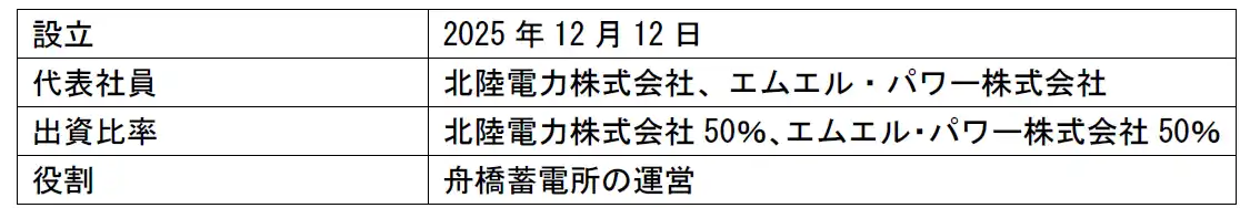 <舟橋蓄電所合同会社の概要> |