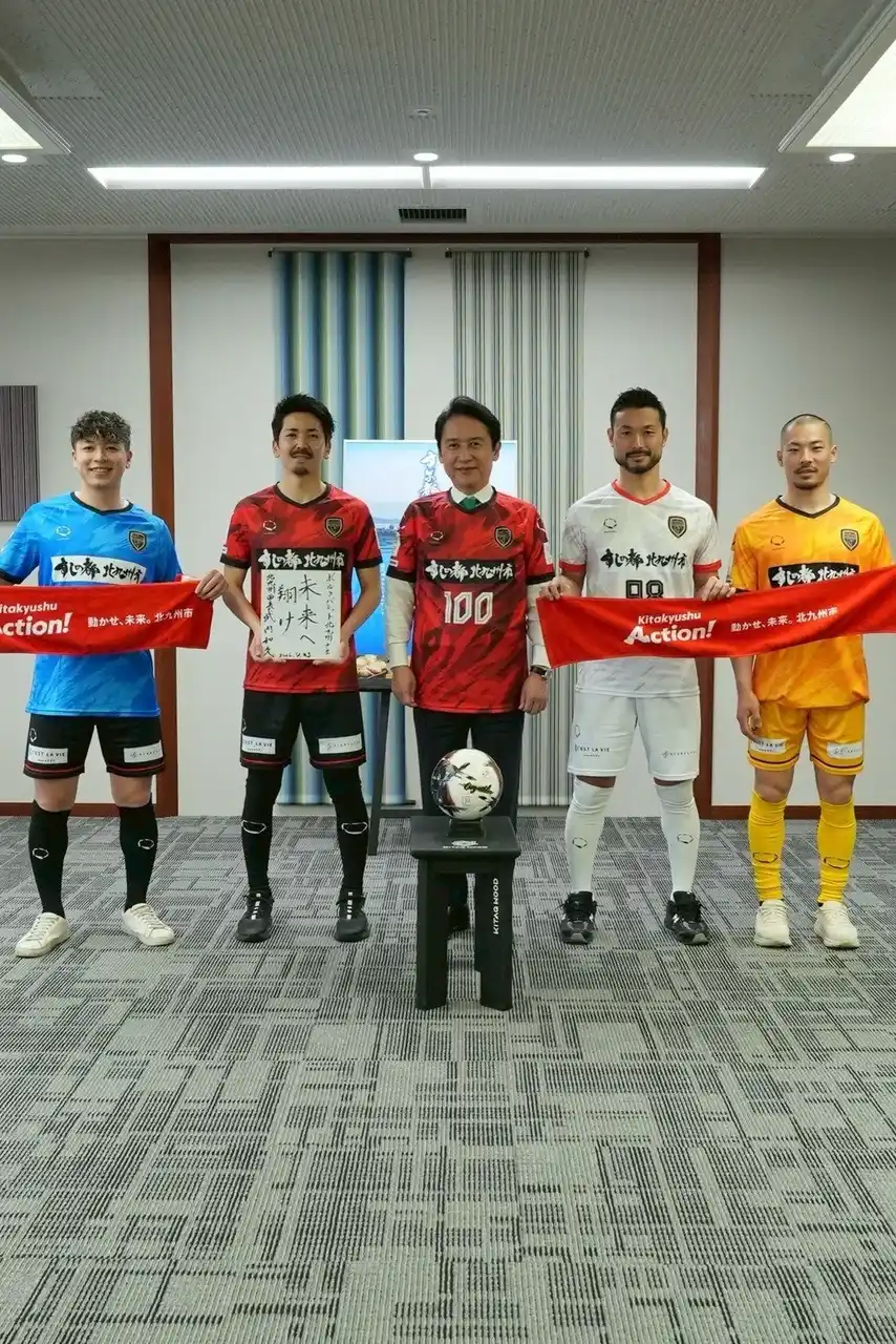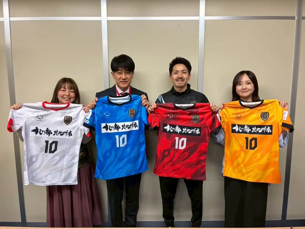 | 試合だけでなく、市内のさまざまな祭りやイベントで活躍されている選手の皆さんが、このユニフォームを身にまとい、北九州はもとより県外での試合や活動を通じて、子どもたちに夢と希望を届け、地域に元気をもたらしてくださることを心より期待しております。】 | ||||||||||||||