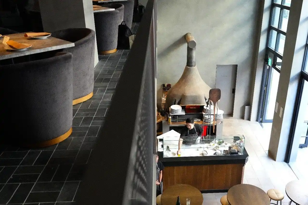 ホテルのレストランは、全国で飲食店を展開し、「THE KNOT TOKYO Shinjuku」でも協業している株式会社MOTHERSの、洗練された大人のためのオールデイダイニング「MORETHAN CAFE RESTAURANT LOUNGE(モアザン カフェ レストラン ラウンジ)」が、福岡や九州各地の食材を取り入れた料理を提供し、宿泊者だけでなく天神の街に開かれたレストランとして、地域の人々や旅人が自然に交わる場所をつくります。九州初のタップカクテル、熊本県阿蘇郡産山村にある牧場施設「UBUYAMA PLACE(ウブヤマ プレイス)」でつくられるチーズを使用した “Farm to Pizza”を始め、食事を通じて”小さな旅”が感じられるメニューを提供しています。 |