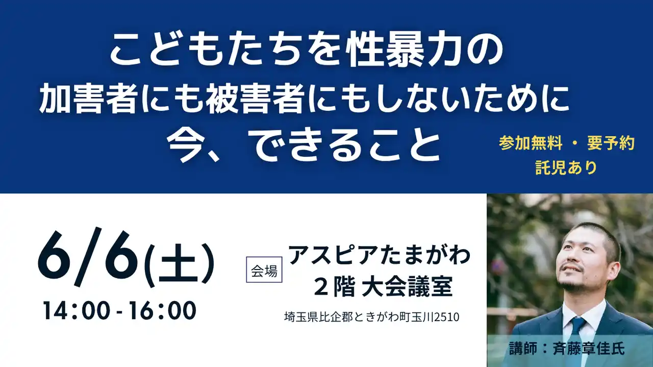 | 性教育の普及啓発活動を行うNPO法人にじの絲(埼玉県ときがわ町)は、加害者臨床で現在まで3500名以上の性犯罪加害者の治療に関わる斉藤章佳氏を講師に迎え、6月6日土曜日 埼玉県ときがわ町にて【こどもたちを性暴力の加害者にも被害者にもしないために 今、できること】講演会を開催します。 | |||
