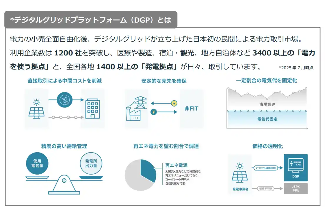 | 事業内容:電力及び環境価値取引プラットフォーム「DGP」運営、分散型電源アグリゲーションサービスの提供 | |||
